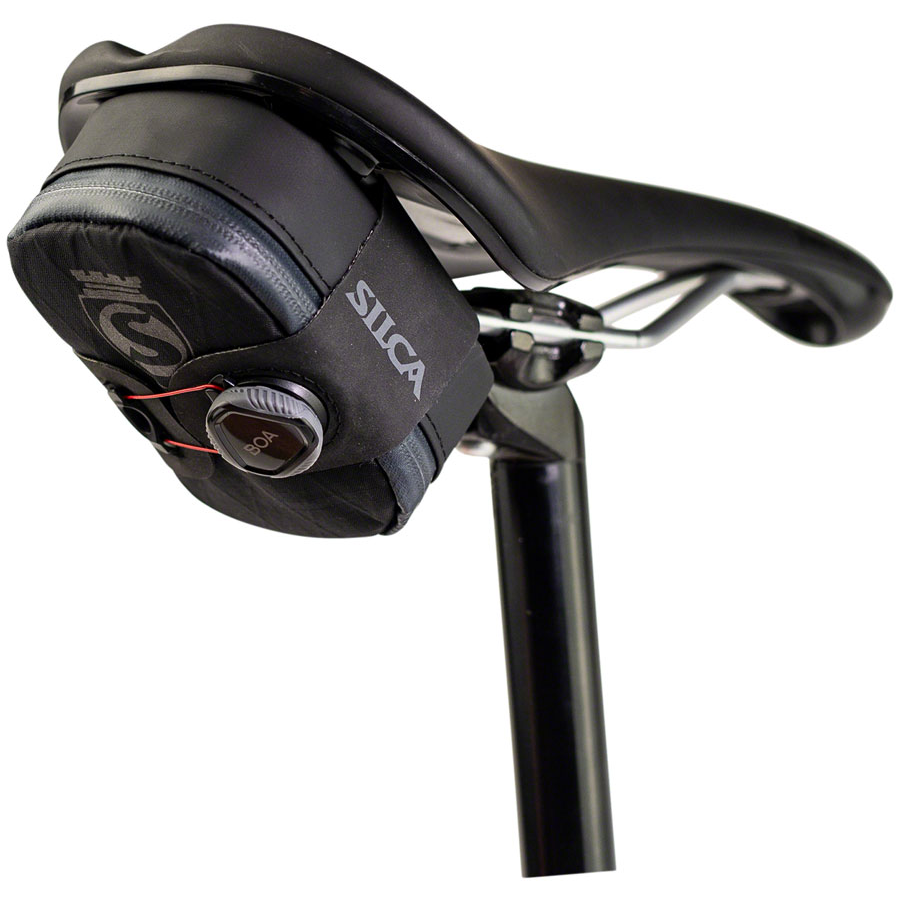Silca Mattone seat packs use the power of BOA® to keep all your spares in a compact, rattle free pack. A high friction Hypalon strap with BOA® Closure completes the package. Making more than 15x the power of Velcro®, the BOA® Closure uses a ratcheting mechanism that will not creep or loosen even under the most extreme vibration and impact. This ensures the Mattone will remain 'high and tight' under your saddle until you need to access it. no swinging, swaying, or rattling.