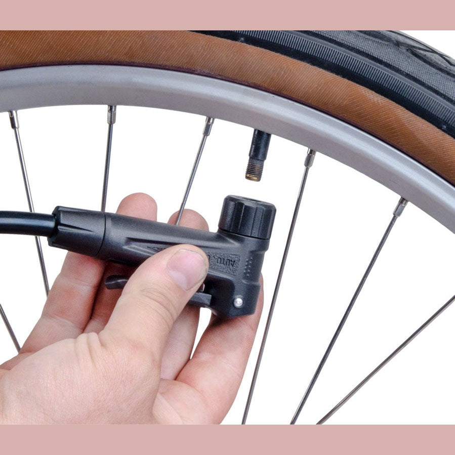 The PFP-10 is a reliable floor pump that's equally at home in the garage, workshop or trailhead, with a long hose, extra-large foot pads and a giant easy-to-read gauge. The locking universal head is compatible with both Presta and Schrader valves. The PFP-10 features a new universal head — one hole that is compatible with both Presta and Schrader valves. The gauge is an upgraded design and features metal internals instead of the plastic internals found on the PFP-8.