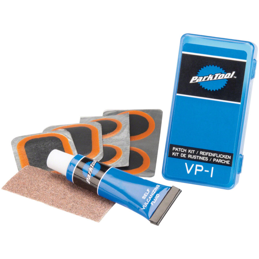 The Park Tool VP-1 comes with everything you need to repair a punctured inner tube and get it ready for reinstallation and inflation. Together with the included vulcanizing fluid, the butyl patches create a molecular bond with the inner tube, resulting in a durable permanent repair for any puncture. The application process is easy: simply spread a thin layer of vulcanizing fluid over the area, allow it to dry, remove the backing from the patch, firmly apply pressure (especially at the edges), and inspect the bond after a minute or two. Compatible with nearly all bicycle inner tubes.