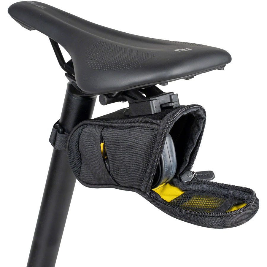 The aerodynamic wedge shape lets these under seat bags slip easily through the wind while the internal pockets keep tools away from inner tubes and other delicate items.