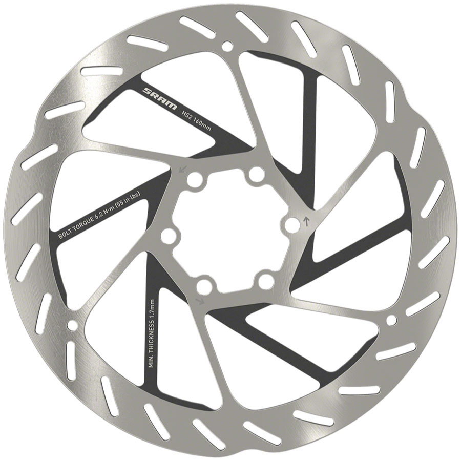 Rotor de freno de disco SRAM HS2 - 160 mm, 6 tornillos, redondeado, plata/negro