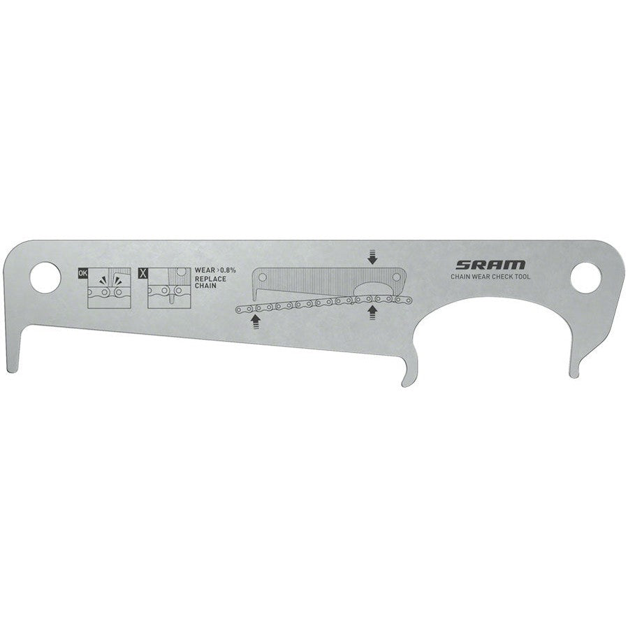 The SRAM chain wear indicator tool is compatible will all the existing SRAM chain models and this includes HARD CHROME and non-HARD CHROME chain technology with a 0.8% wear critical specification.